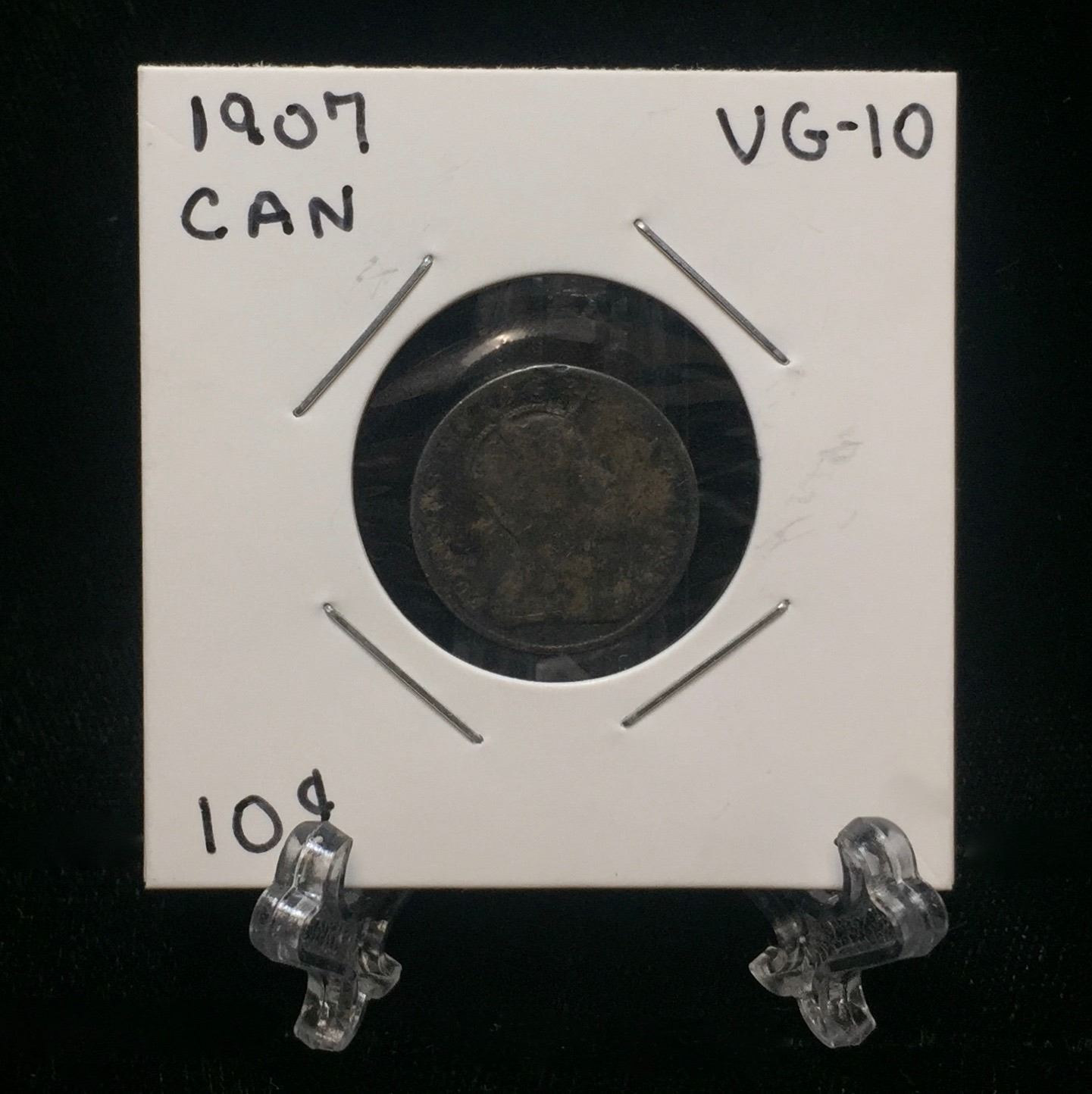 Lot 424; 1907 Canada 10-Cents Silver Coin Very Good, Silver .925, King Edward VII Effigy, Condition as Pictured