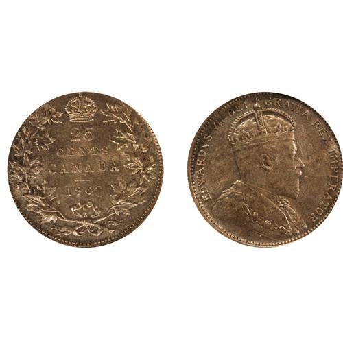 CATALOGUE VALUES: Estimates are in Canadian dollars. Values listed for Canadian Coins are based on the current Canadian Coin News Trends or taken from the Cornwell Report Valuation Guides (used for pricing on the higher grade pieces). The Charlton Standard Catalogue of Canadian Coins has been used to value Specimen and Proof strikes. Charlton’s Canadian Banknote Catalogue and Canadian Government Paper Money Guide are used for pricing of the Canadian banknotes. The USA 2006 Red Book, Coin Dealer Newsletter and Coin Values Magazine are used for