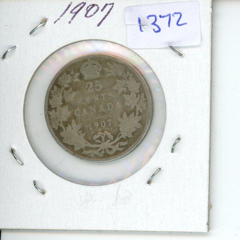 1907 Canadian 25 Cent Coin - 92.5% Silver, 7.5% Copper
