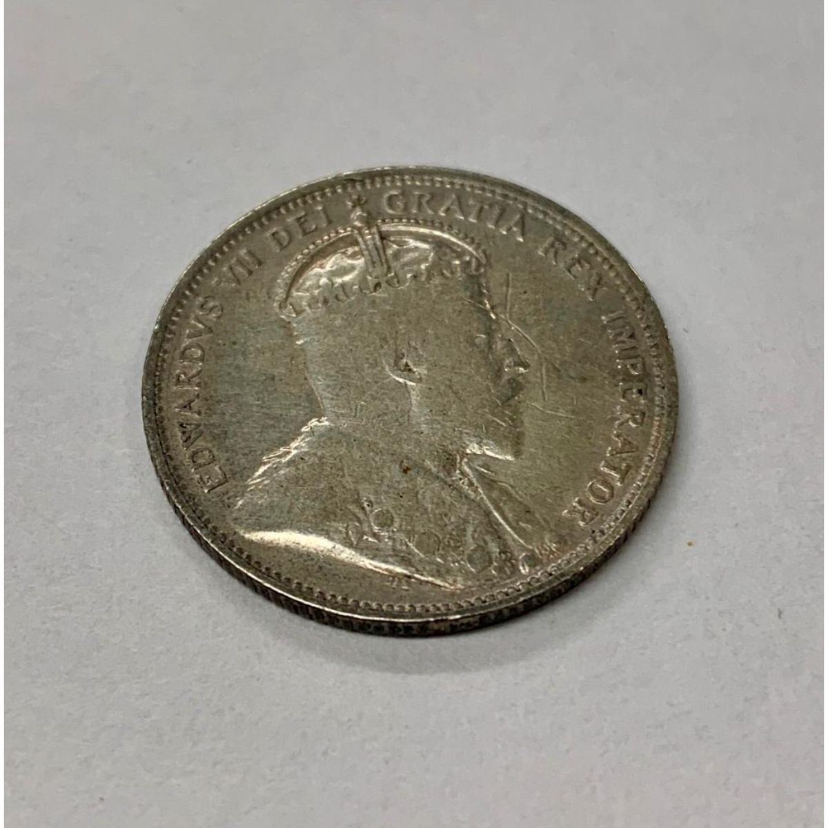 The obverse of the coin shows Edward VII facing towards the right, while the reverse side denominates a date within a wreath with a crown above it. Alloy: 92.5% silver, 7.5% copper
