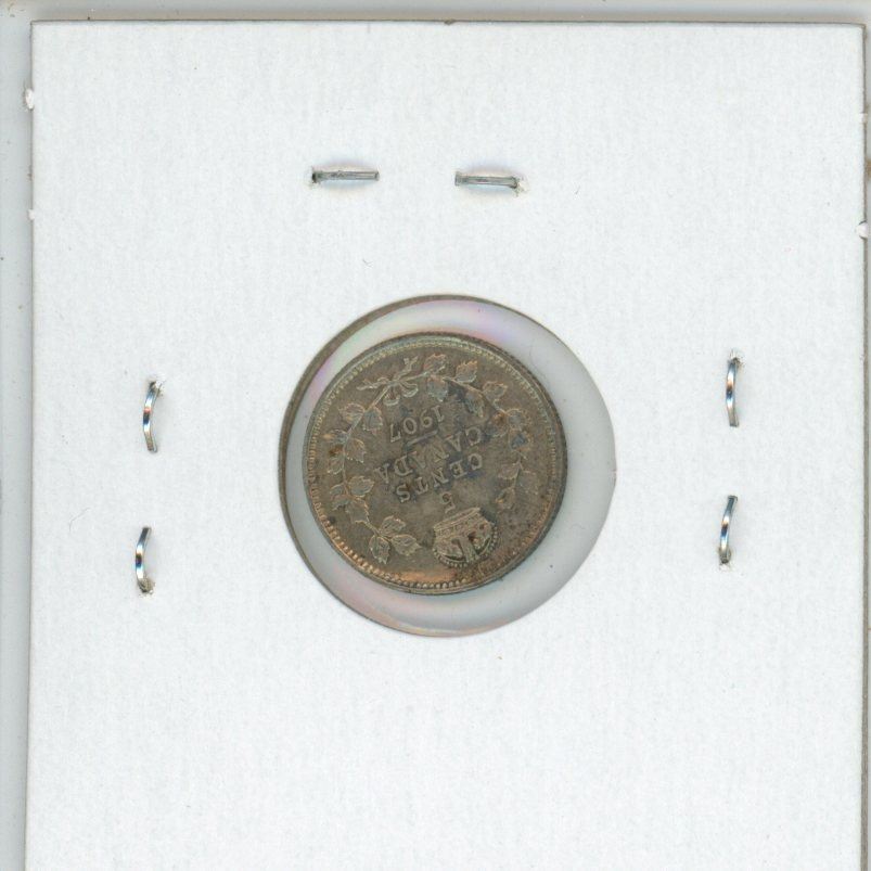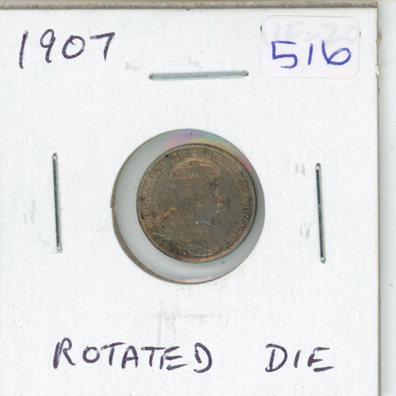 1907 Canadian Silver 5 Cents. VF-20 with Rotated Die.
