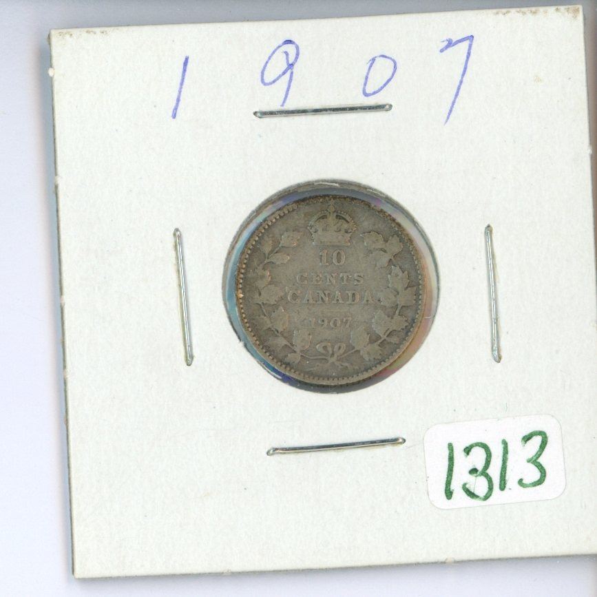 1907 Canadian silver 10 cent coin