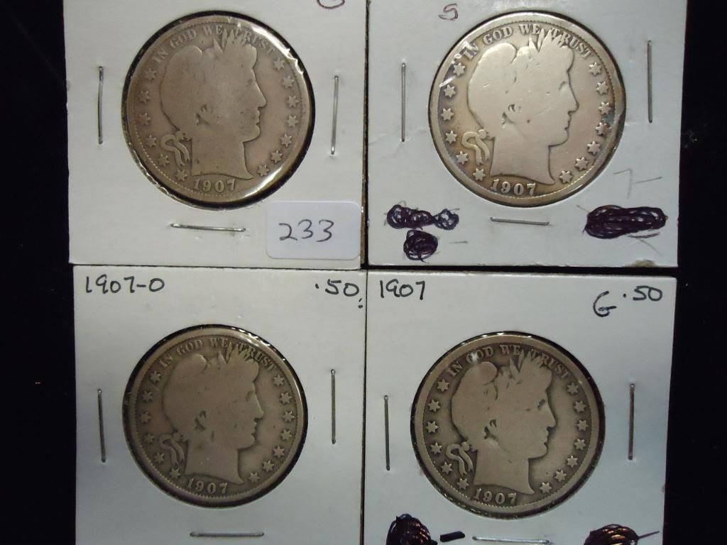 1907-D,07-S,07-O & 07 BARBER HALF DOLLARS