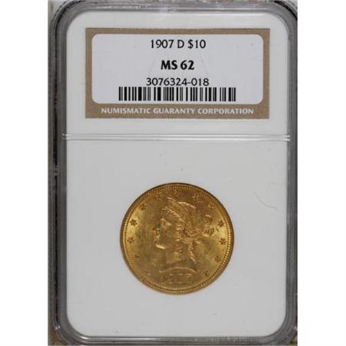 1907-D $10 MS62 NGC. NGC Census: (142/109). PCGS P