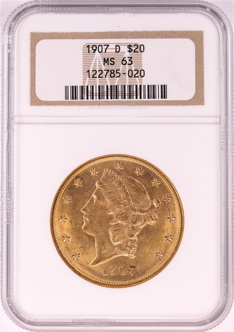 One 1907-D $20 Liberty Head Double Eagle Gold Coin NGC MS63. NGC Certified.