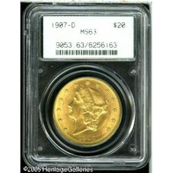<B>1907-D $20 MS63 PCGS.</B></I> Sharply struck and brilliant with a scrape in the lower obverse field that defines the grade. Lot:9423