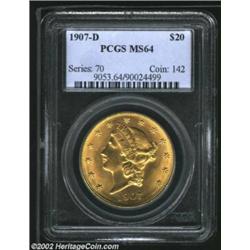 1907-D $20 MS64 PCGS. A bright and flashy near-Gem with a needle-sharp strike and exceptionally pres