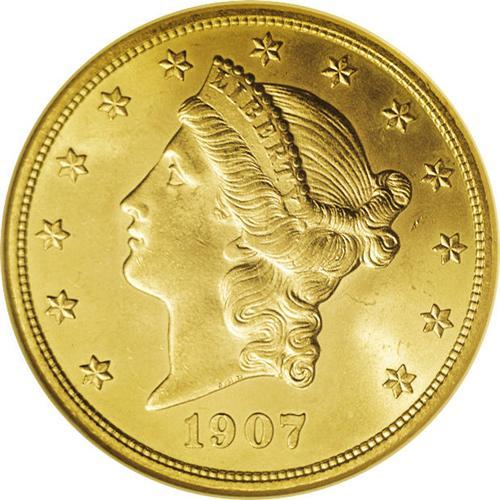 <B>1907-D<$20> MS65 NGC.</B></I> One of only two Denver mint twenty Liberties and always a popular issue. While always available in lower grades, Gems are actually quite scarce with only 109 having been so graded by NGC with 30 finer (4/06). Well defined throughout, the even yellow-gold surfaces show a pronounced satiny sheen. There are no obvious abrasions on either side of this lovely Gem.