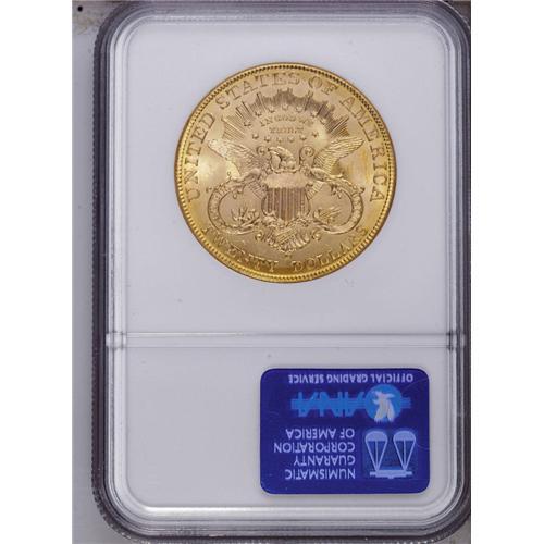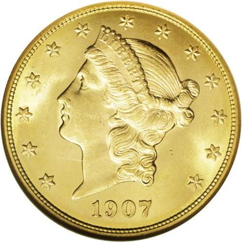 <B>1907-D<$20> MS65 NGC.</B></I> This bright and highly lustrous final-year Liberty twenty provides clean fields and only faint grazes on the cheek. The strike is crisp, and the eye appeal is irrefutable. The Denver Mint struck the series for just two years, and only a tiny portion of surviving examples can match the quality of the present piece. The TY in LIBERTY is lightly die doubled west.
