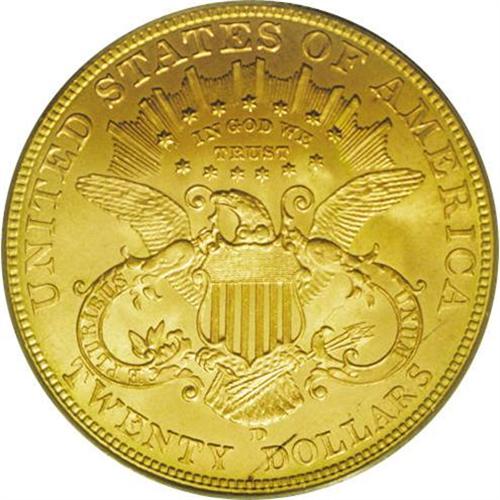 <B>1907-D<$20> MS65 PCGS.</B></I> Second year of D-mint production and the only truly obtainable Denver twenty in Gem condition. Offered here is a silky-smooth, satiny example with delicate lemon-yellow accents.