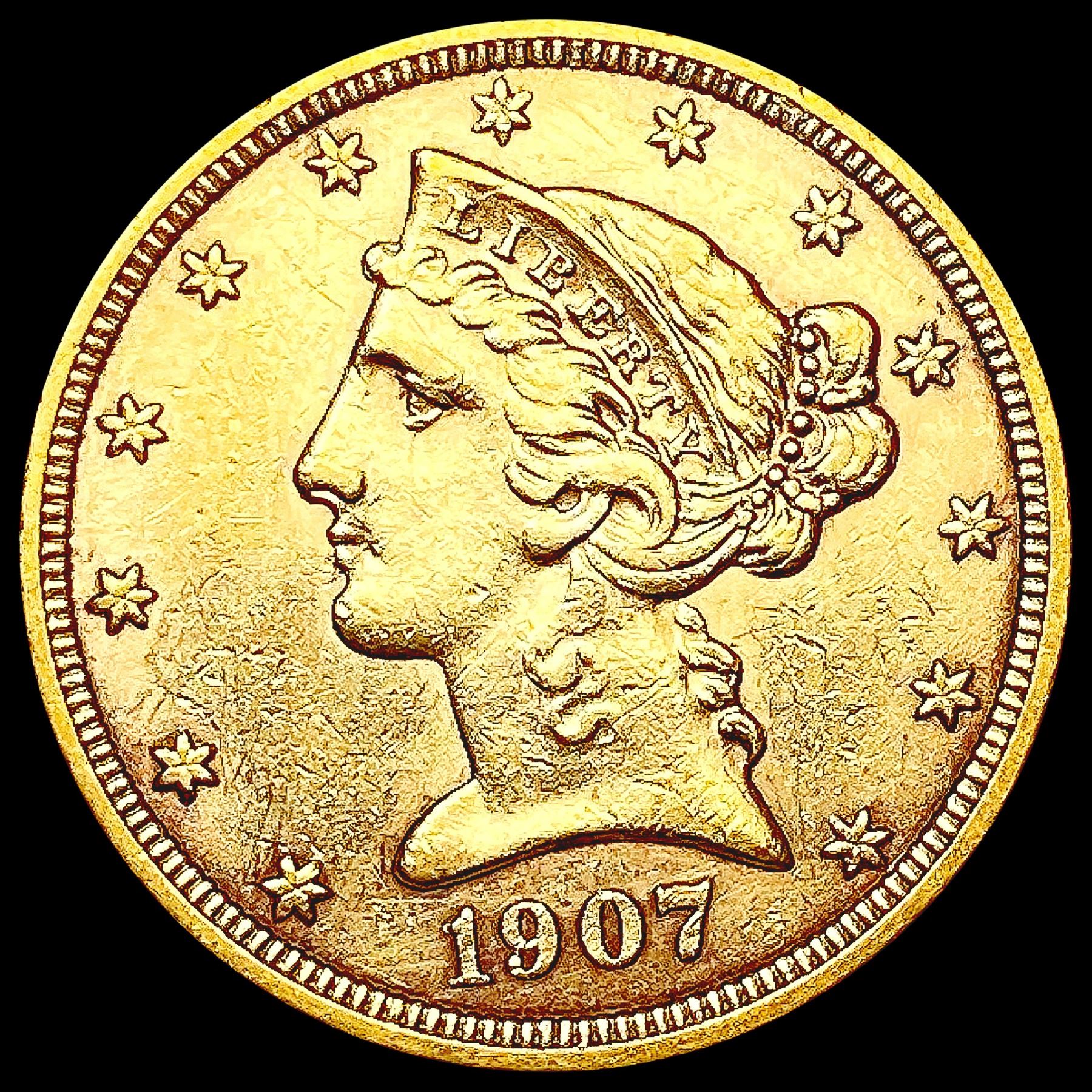 1907-D $5 Gold Half Eagle CLOSELY UNCIRCULATED