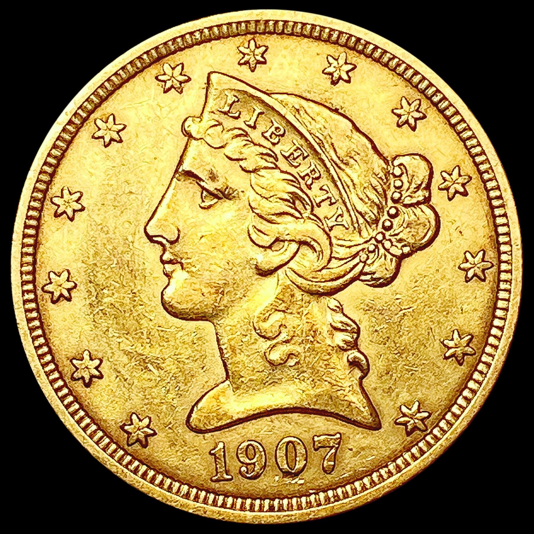 1907-D $5 Gold Half Eagle CLOSELY UNCIRCULATED