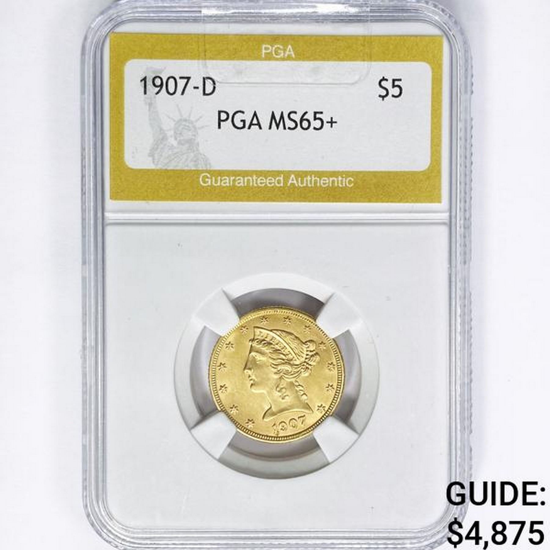 1907-D $5 Gold Half Eagle PGA MS65+