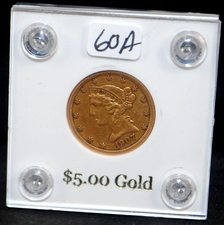 1907-D $5 LIBERTY GOLD COIN FROM SAFE DEPOSIT - SELLER GRADES @ XF (CURRENT COIN WORLD TRENDS LISTS AN XF40 @ $425.00)