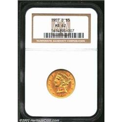 1907-D $5 MS62 NGC. Mintage: 888,000....