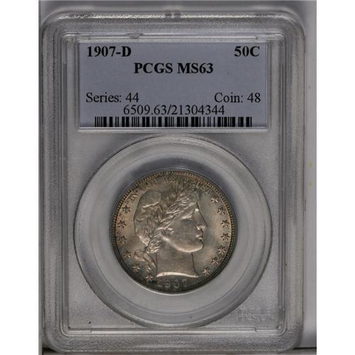 1907-D 50C MS63 PCGS. Well struck and fully lustrous, 1907-D