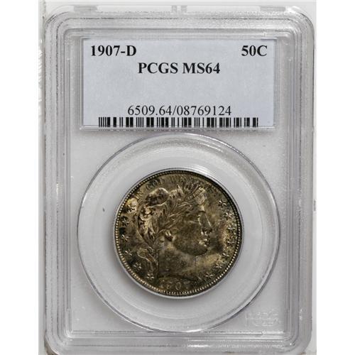 1907-D 50C MS64 PCGS. Choice and sharply struck with d