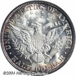 <B>1907-D<50C> MS65 PCGS.</B></I> A high mintage (3,856,000 pieces) issue, this Barber half is surprisingly elusive at the Gem level of preservation. The obverse borders are toned in olive, russet, and aqua colors, while the reverse features mostly russet toning around the margins, and is a touch more brilliant in the center. Boldly struck and free of noticeable contact marks, this is a memorable representative of this second-year D-mint delivery. A few wispy slide marks on Liberty's cheek and neck are noted for accuracy. <BR><BR><B>Important notice:</B> Heritage usually auctions material at the rate of 200-250 lots per hour. On some occasions eBay Live bid software or the Internet may not be able to keep up with the pace of the auction. We recommend placing a realistic absentee bid now as insurance to avoid disappointment. Occasionally the auctioneer may eliminate or reject an eBay Live bid, and the auctioneer may also reopen a lot after the close of the eBay live bidding (usually because we missed an audience bid), and may reject your bid even if it shows you as the winning bidder. By bidding via eBay Live, you agree that Heritage may award the lot to another bidder at its sole discretion under the circumstances described above or any other reasonable circumstances. Since eBay bids are not shown to us until we open the lot on the floor, we treat those bids just like floor bids. In most cases the floor responds before the eBay bid is presented to us, due to Internet lag time, so for consistency we have made it a policy that floor bids are always considered first over tie eBay live bids. Also please note that all Heritage lots purchased through eBay Live carry a 20% Buyer's Premium. Please make sure you read the Terms and Conditions before you bid. </span></font></tr></table></td></tr></table>