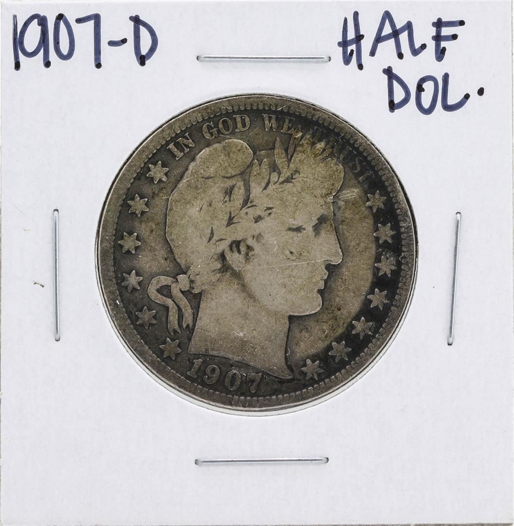 One 1907-D Barber Liberty Head Half Dollar Coin.