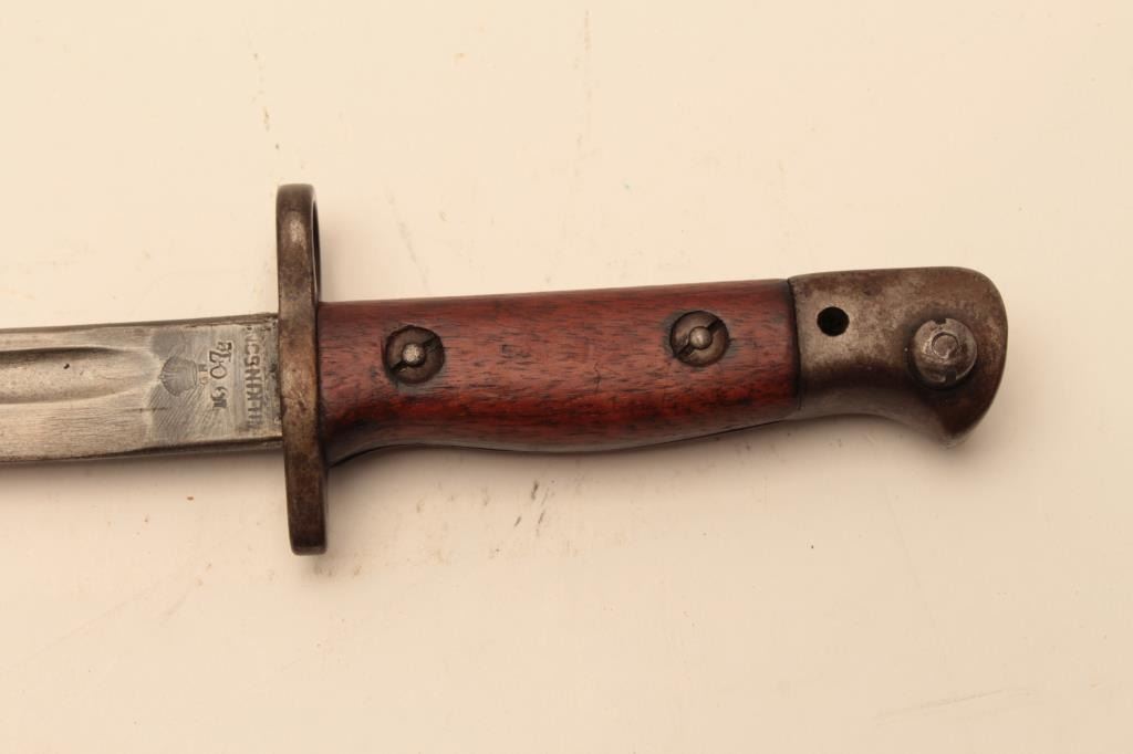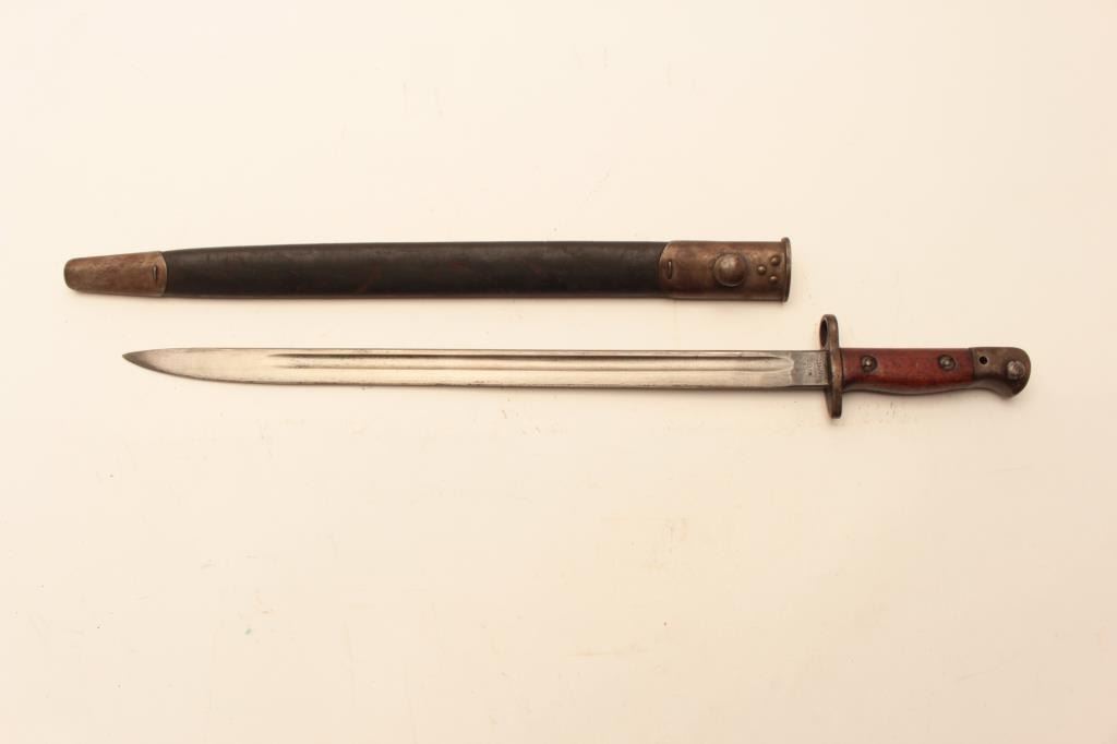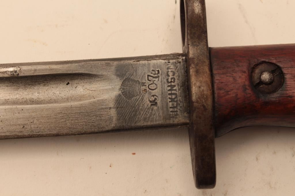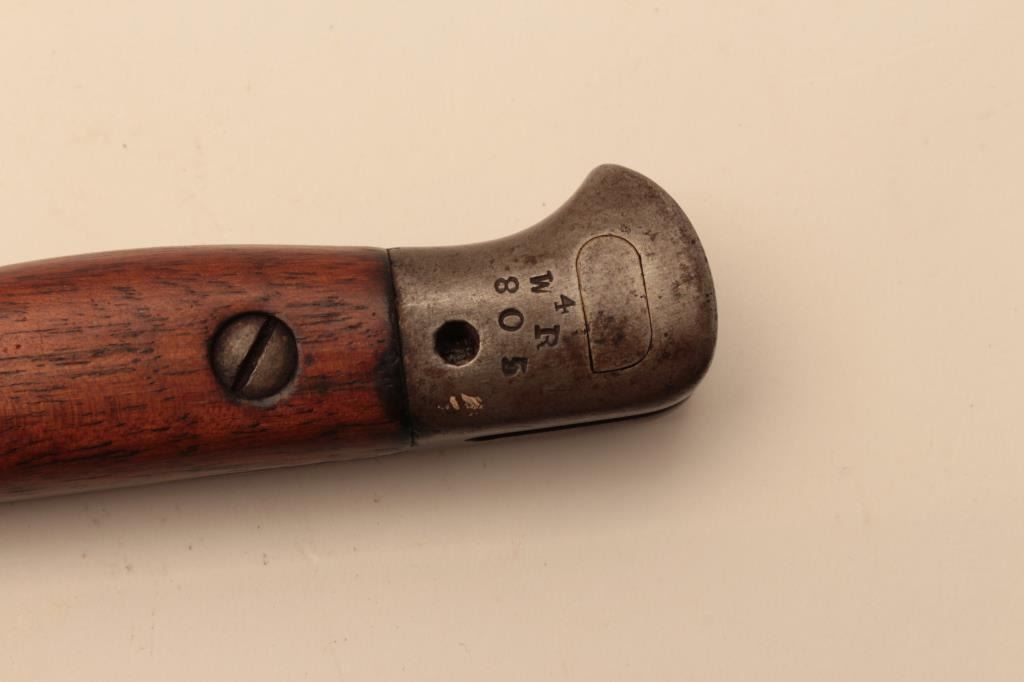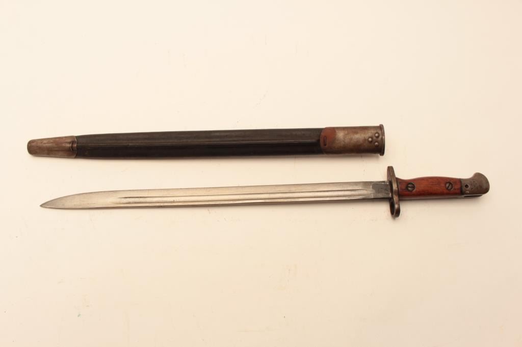 1907 dated pattern bayonet for Enfield marked Wilkinson and proofed WR regiment marked very good plus with scabbard. Est:$75-150