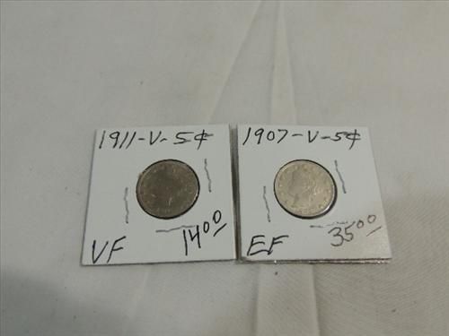 1907 EF & 1911 VF FULL LIBERTY V-NICKELS. AS SHOWN. VIEW PICTURE FOR DETAIL.