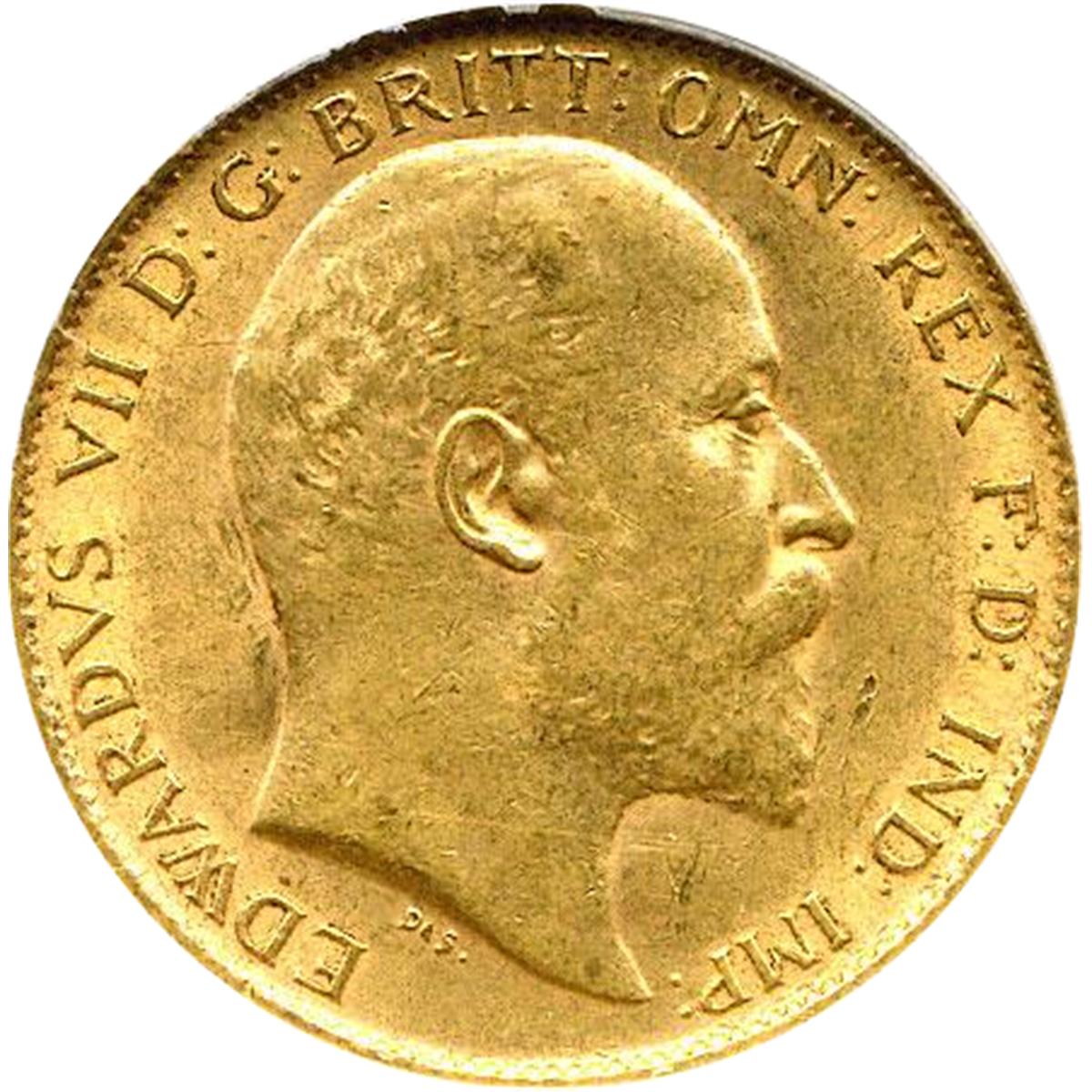 3.9940 g., 0.9170 Gold 0.1177 oz. AGW Ruler: Edward VII Obv:
