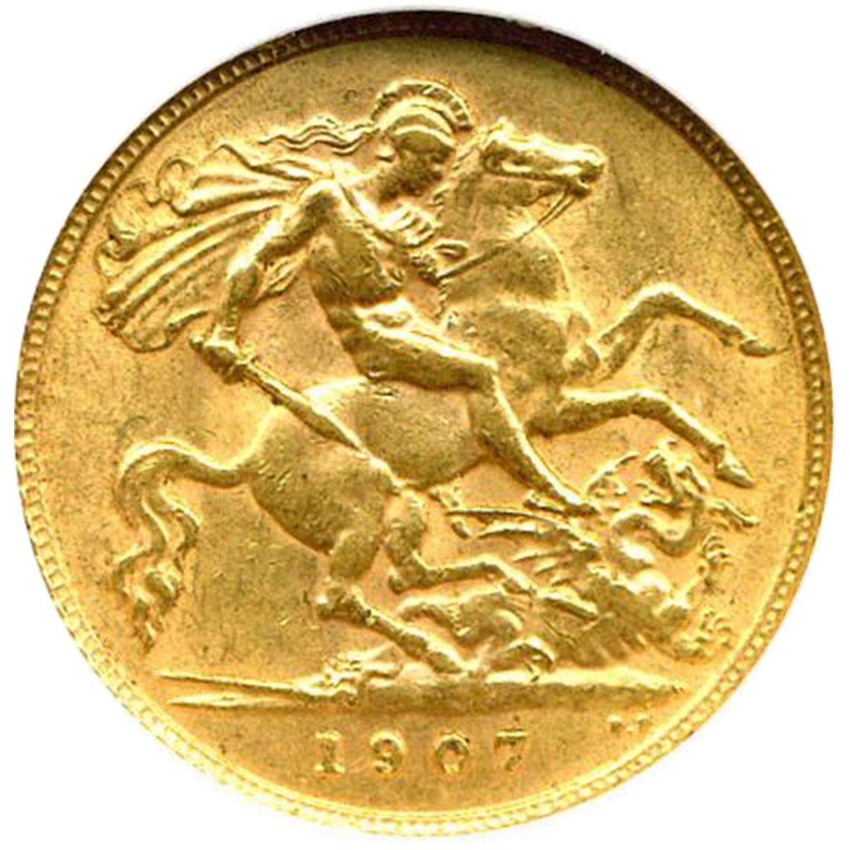 1907 GREAT BRITAIN GOLD HALF SOVERIGN-NICE BU