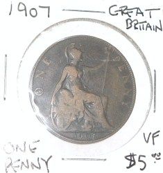 1907 GREAT BRITAIN ONE PENNY WORLD BOOK VALUE IS $5.00 *RARE VERY FINE GRADE*!! ***Coin, Currency & All Items Listed in this auction - Grades, Conditions and Values are not Safe Deposit Coins LLC Responsibilty. Grades, Condition and Values are determined by Consigner(s) & Buyers ONLY