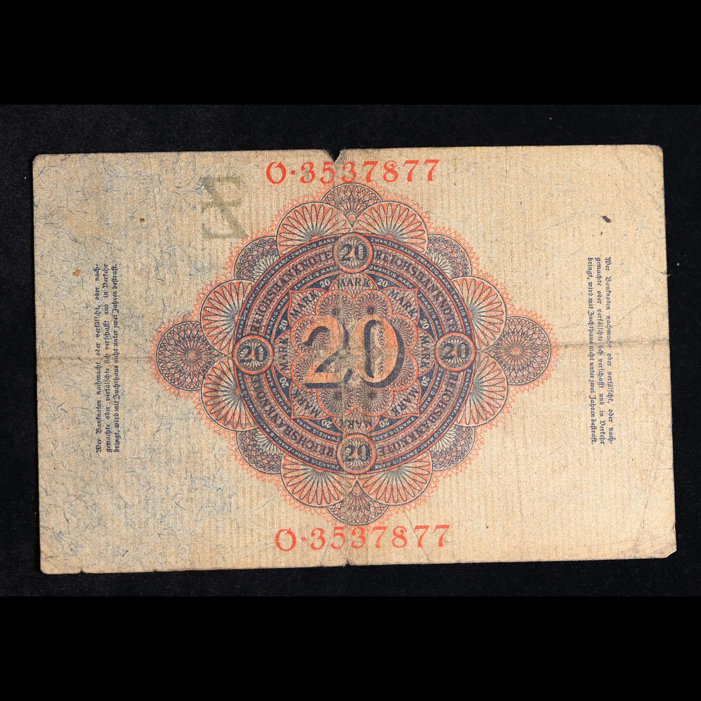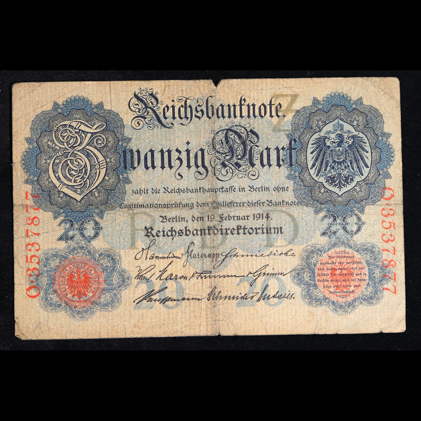 1907 Germany 20 Mark Note P#25B Grades vf+.