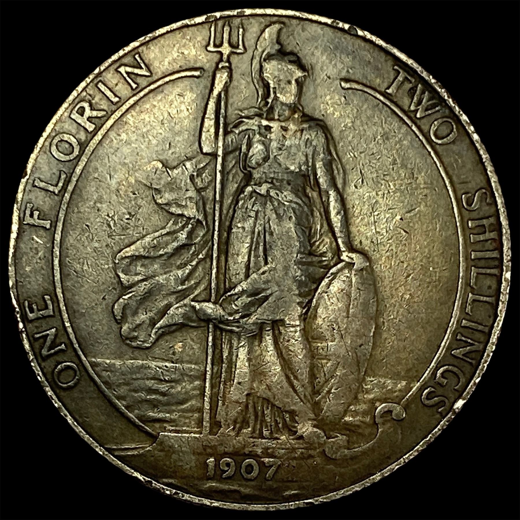 1907 Gr. Britian Silver 2 Shillings NEARLY UNCIRCULATED