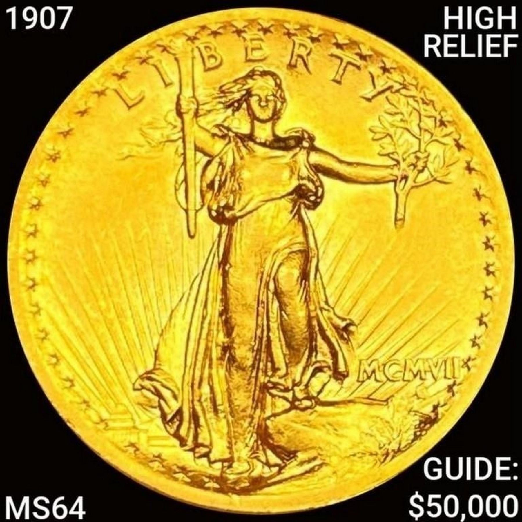 1907 HIGH RELIEF $20 Gold Double Eagle CHOICE BU