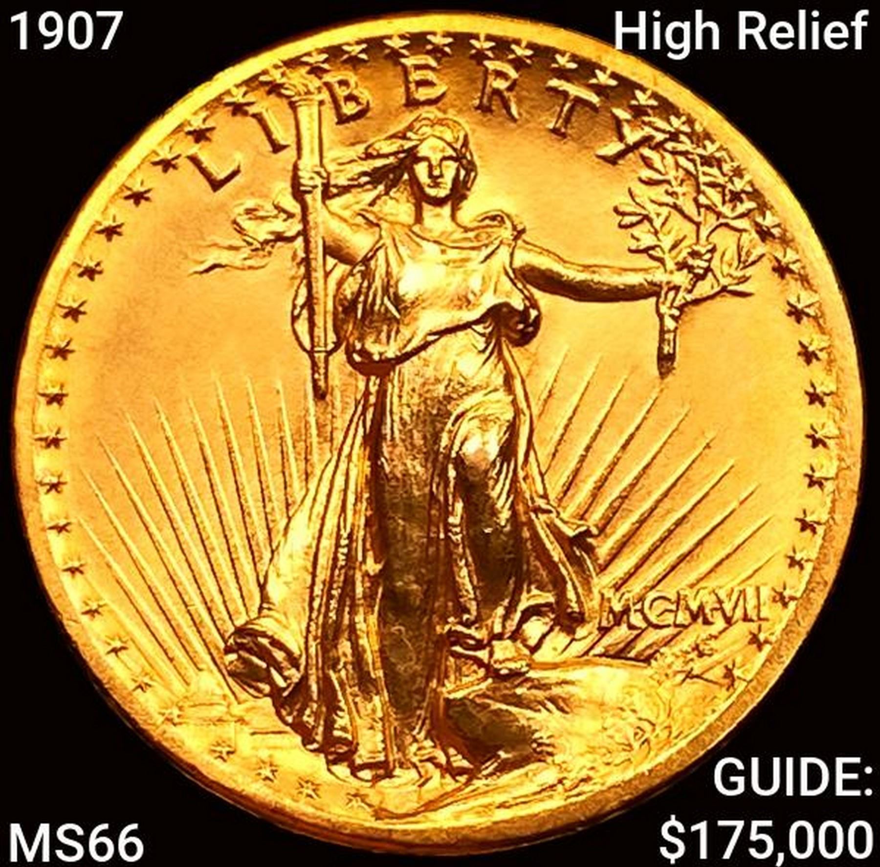1907 High Relief $20 Gold Double Eagle GEM BU