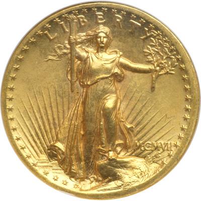 1907. High Relief, Roman Numerals, Flat Rim. NGC graded MS-65. While we typically offer a few representatives of this popular first-year issue each auction season, we seldom have the pleasure to list one as unspoiled as the present Gem Mint State 65. In fact, bidders who are familiar with High Relief Saint-Gaudens double eagles will see that this is an awe-inspiring example. It has richly colored, satin-like features. In fact, the finish is such that one might confuse this coin one of the Proof High Reliefs. The absence of striations in the obverse field and a little rounding of detail in a few areas confirm this coin as a business strike. They key point to remember is that the focal features are razor-sharp in detail, and neither side reveals even trivial blemishes. A coin that needs to be seen to be fully admired. Pop 66; 74 finer, 57 in 66, 12 in 67, 2 in 67 Star, 2 in 68, 1 in 68 Star.