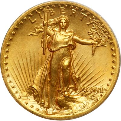 1907. High Relief, Roman Numerals, Wire Rim PCGS MS65