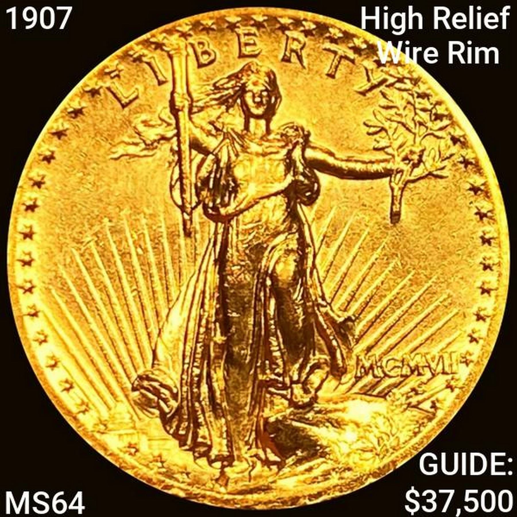 1907 High Relief Wire Rim $20 Gold Double Eagle CH