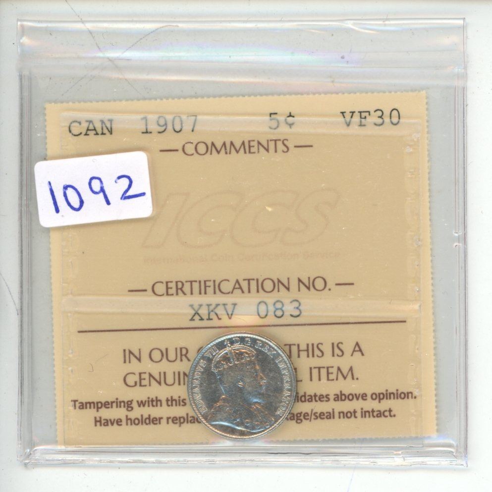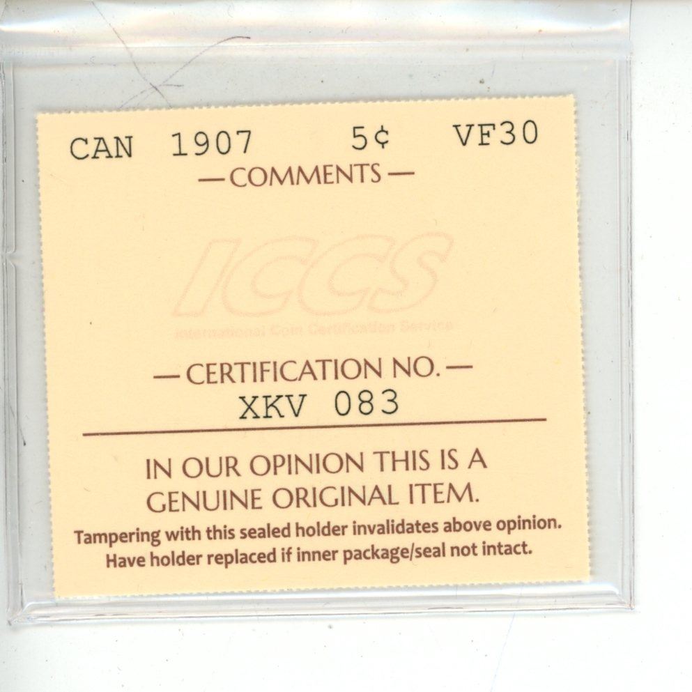 1907 ICCS Graded - Canadian Five Cent - VF30