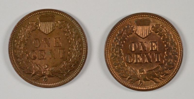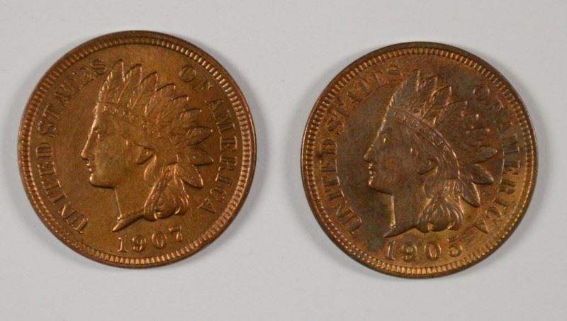 1907 INDIAN HEAD CENT, 1905 INDIAN HEAD CENT, BOTH AU+