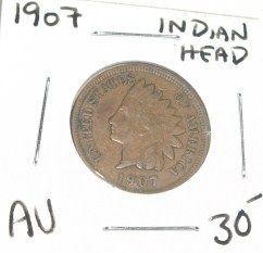 1907 INDIAN HEAD PENNY RED BOOK VALUE $30.00+ *NICE EARLY AU HIGH GRADE*!! PENNY CAME OUT OF SAFE!! ***Coin, Currency & All Items Listed in this auction - Grades, Conditions and Values are not Safe Deposit Coins LLC Responsibilty. Grades, Condition and Values are determined by Consigner(s) & Buyers