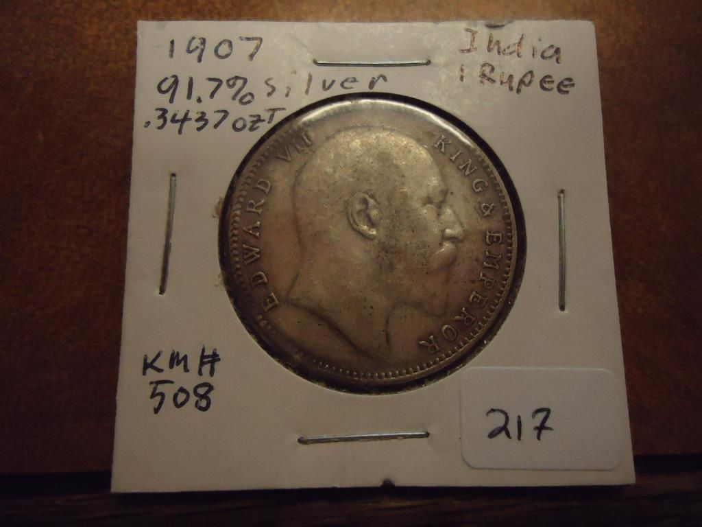 1907 INDIANA SILVER RUPEE .3437 OZ. ASW