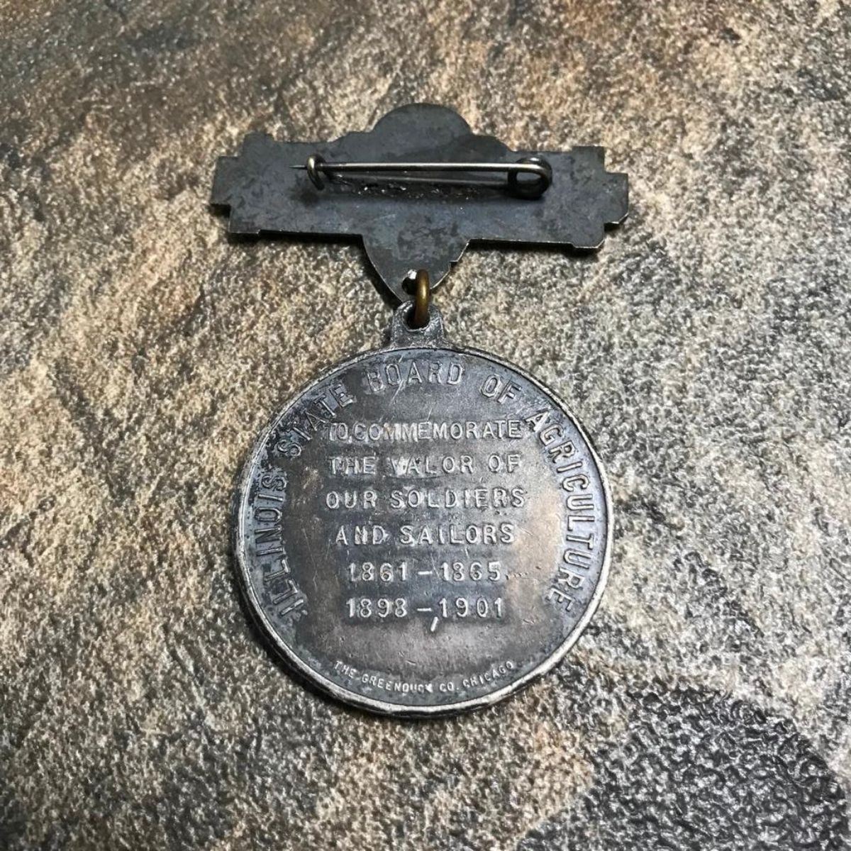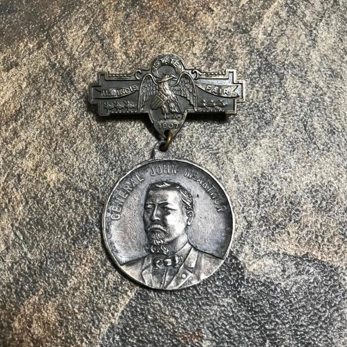 1907 Illinois State Fair, Presentation GAR ( Grand Army of the Republic ) Union General John McArthur bronze commemorative medal pin from The Illinois State Board of Agriculture. Â
