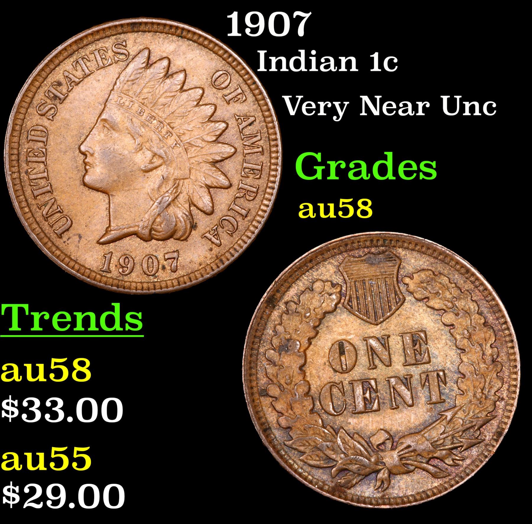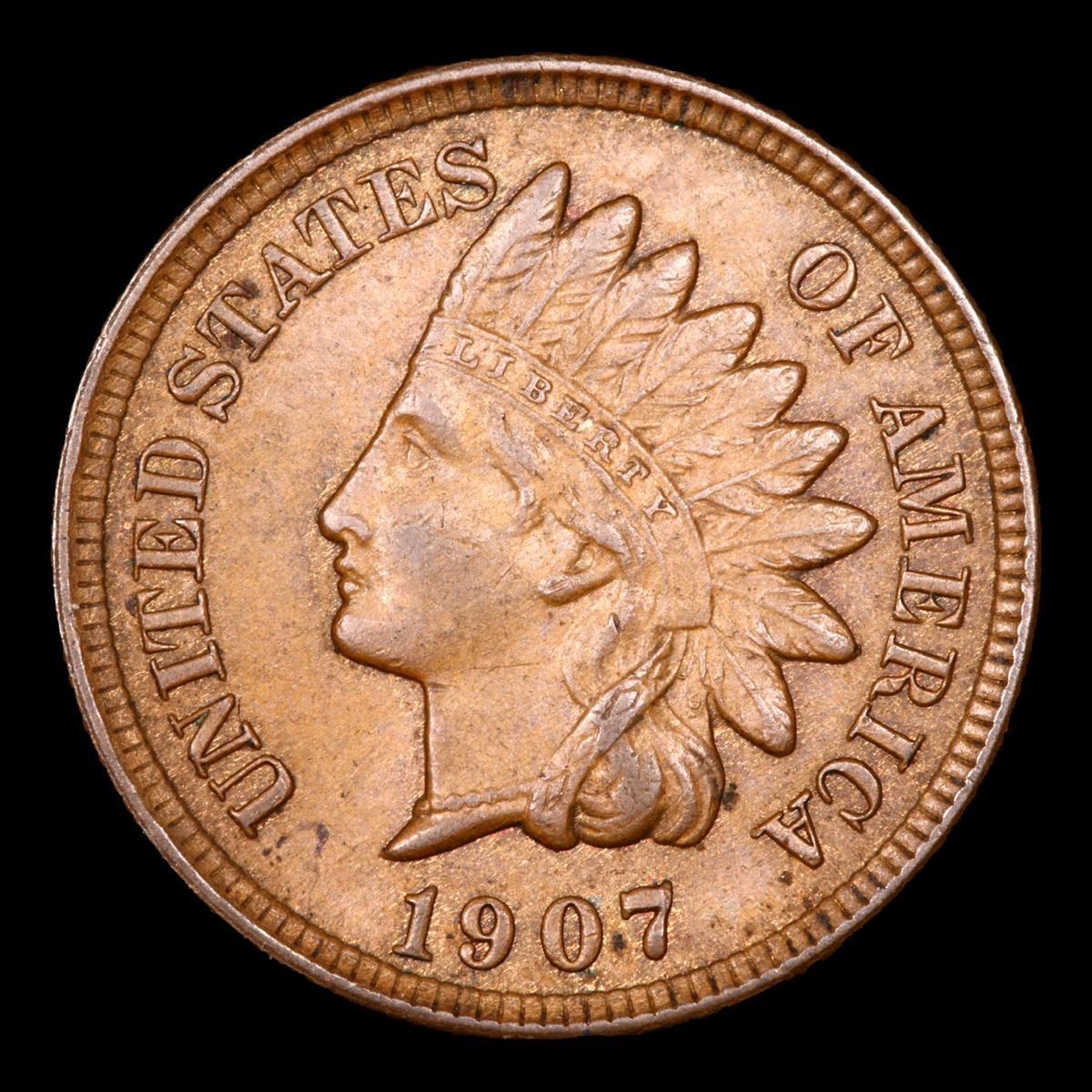 1907 . Very Near Unc Indian Cent 1c Grades Choice AU/BU Slider.