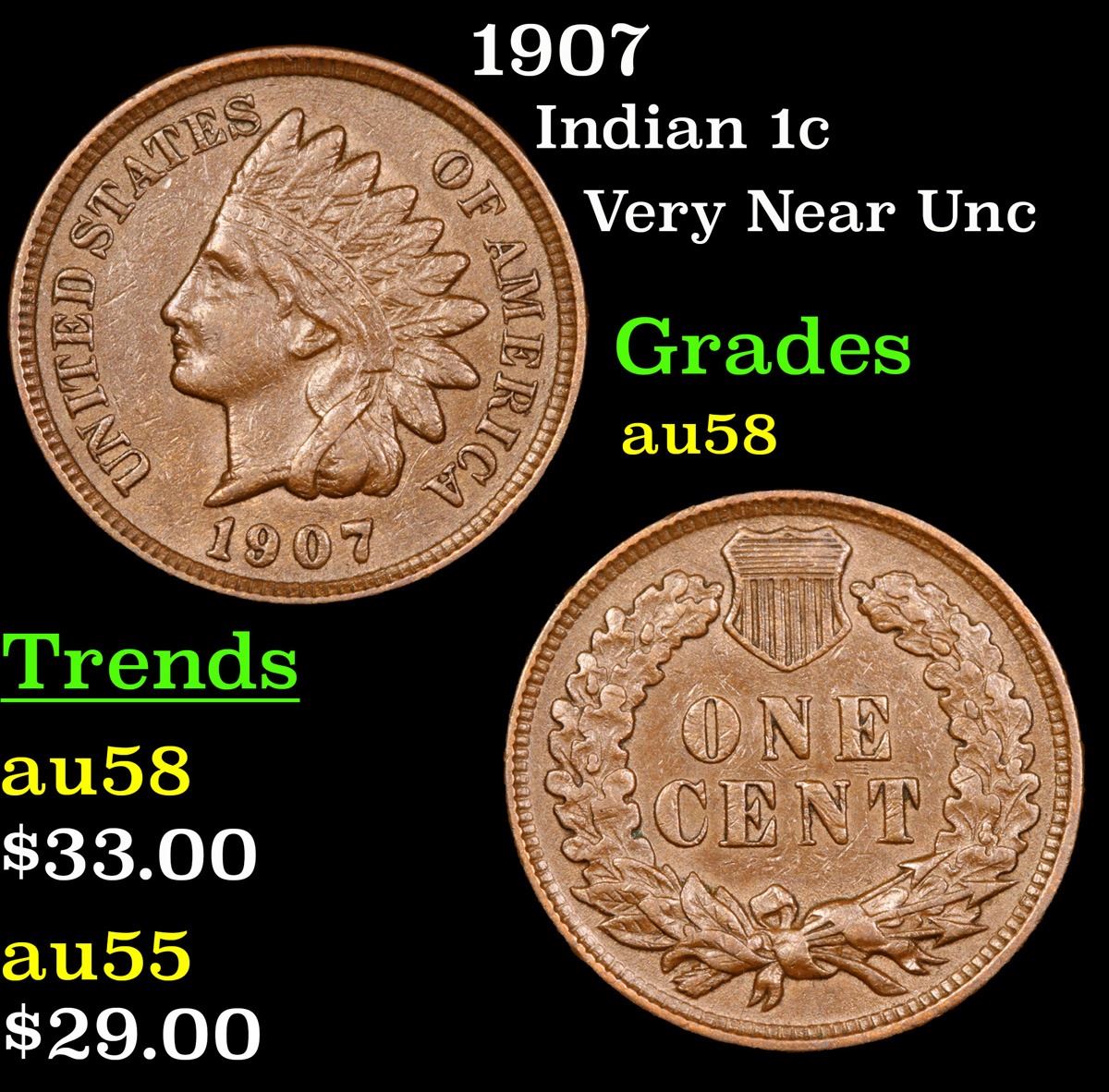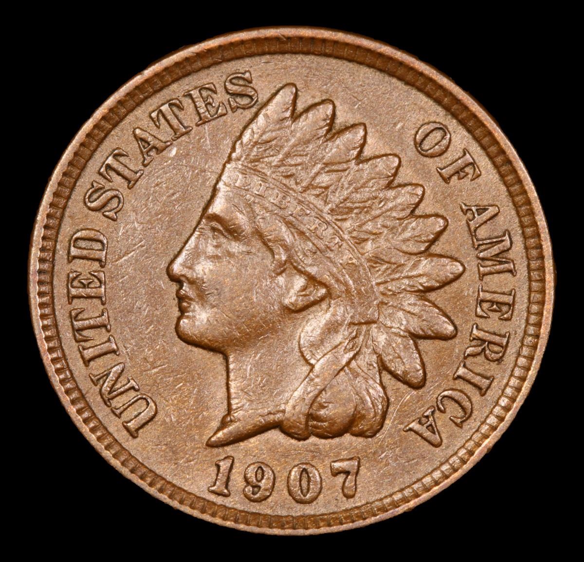 1907 Indian Cent 1c Grades Choice AU/BU Slider.