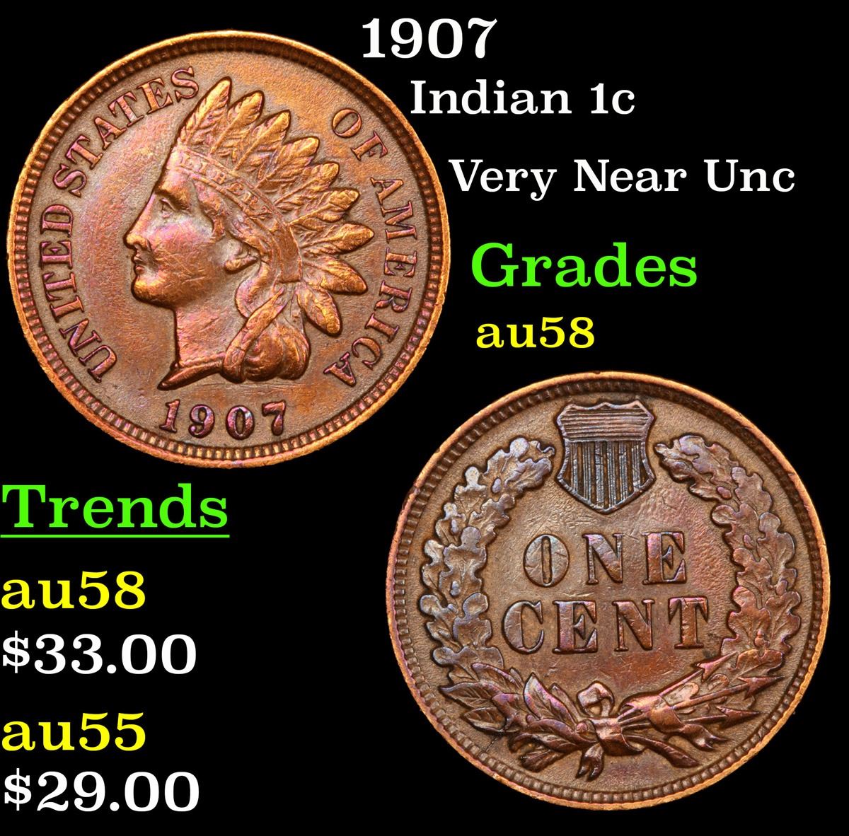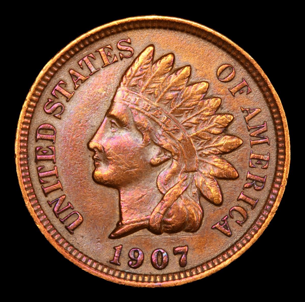 1907 Indian Cent 1c Grades Choice AU/BU Slider.