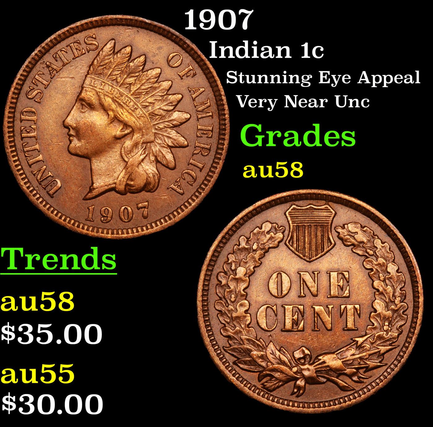 1907 Indian Cent 1c Grades Choice AU/BU Slider.