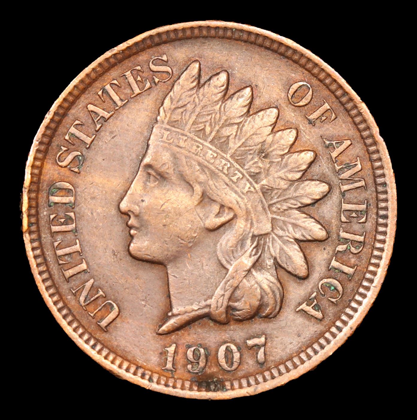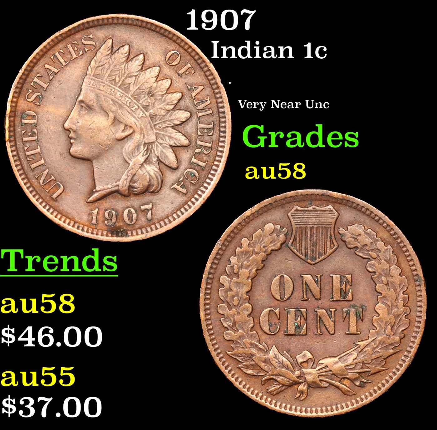 1907 Indian Cent 1c Grades Choice AU/BU Slider.