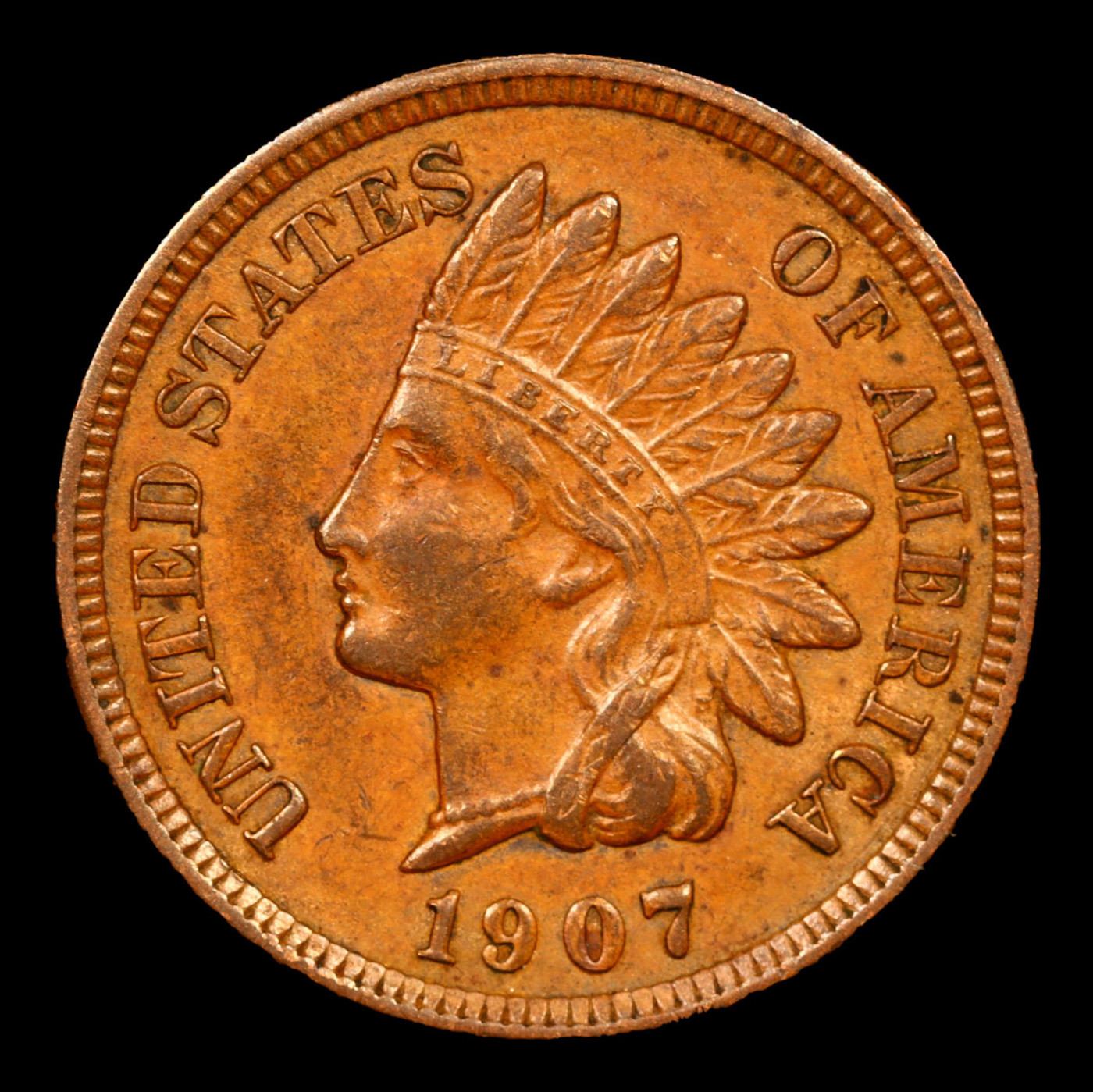 1907 Indian Cent 1c Grades Choice AU/BU Slider.