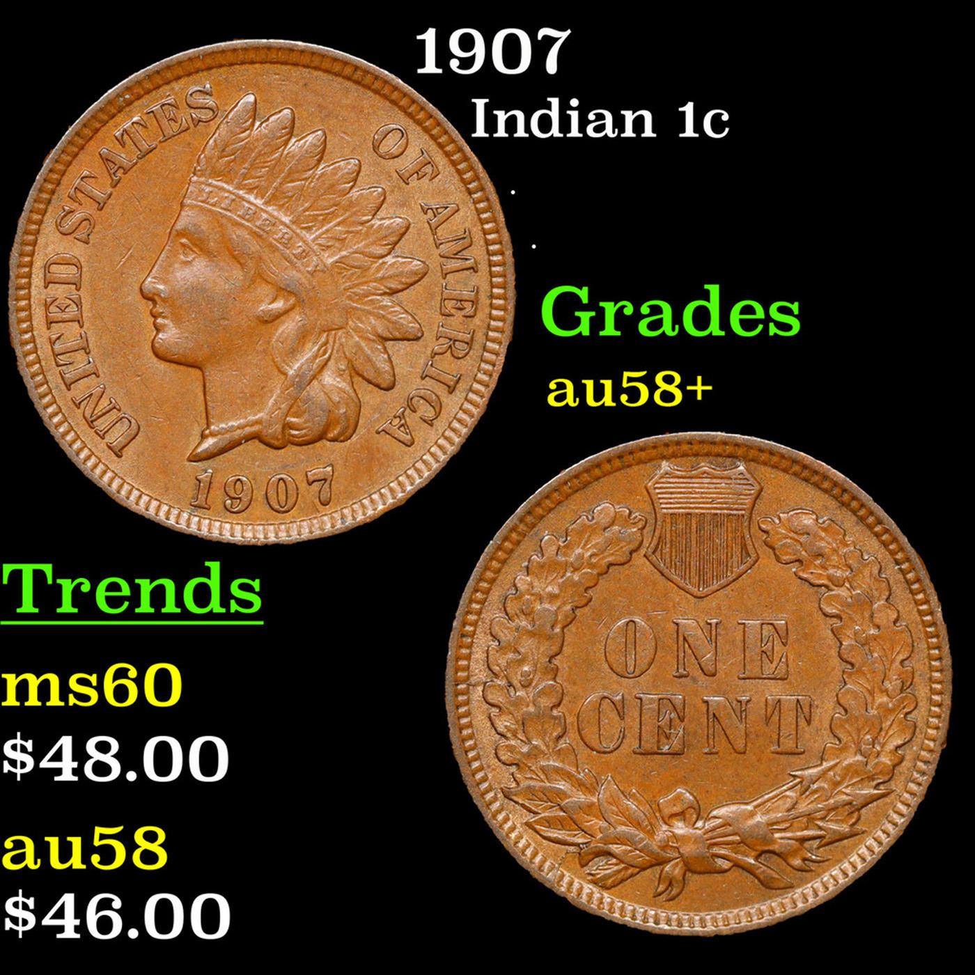 1907 Indian Cent 1c Grades Choice AU/BU Slider+.