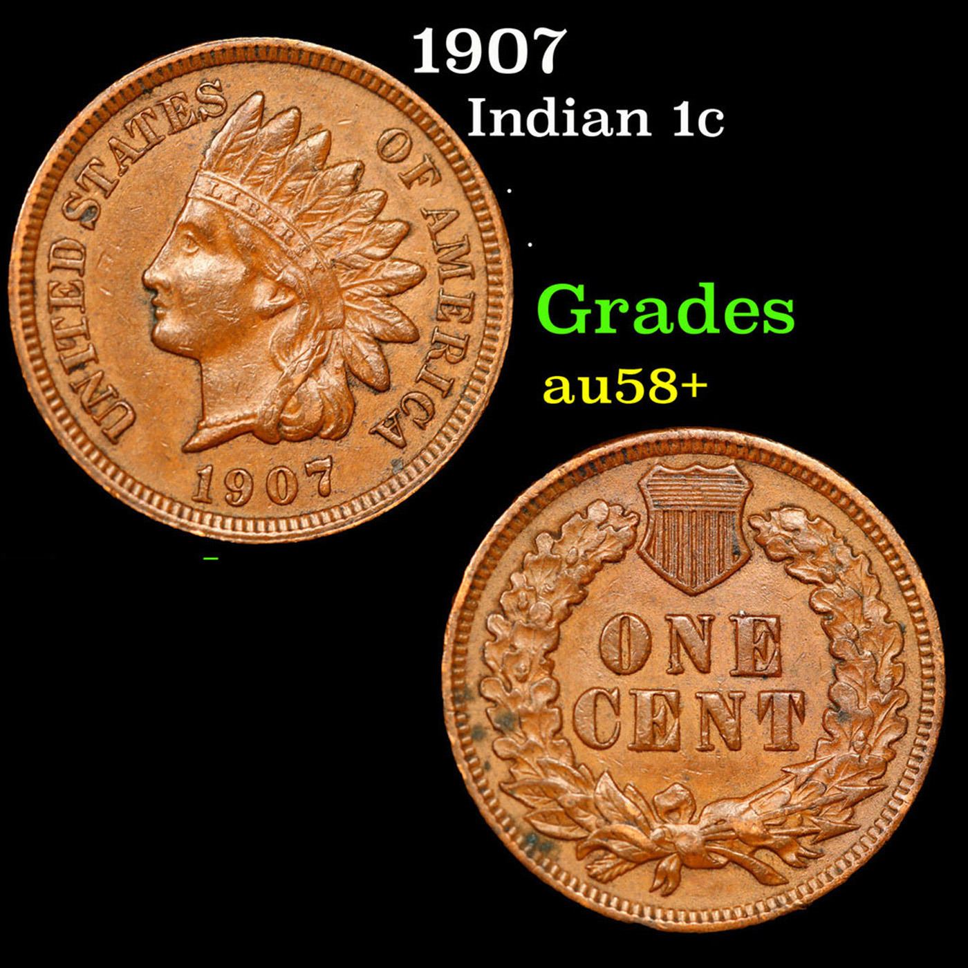 1907 Indian Cent 1c Grades Choice AU/BU Slider+.