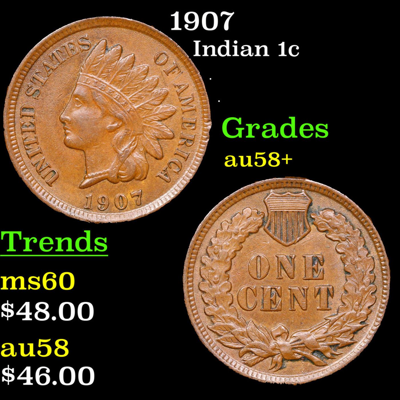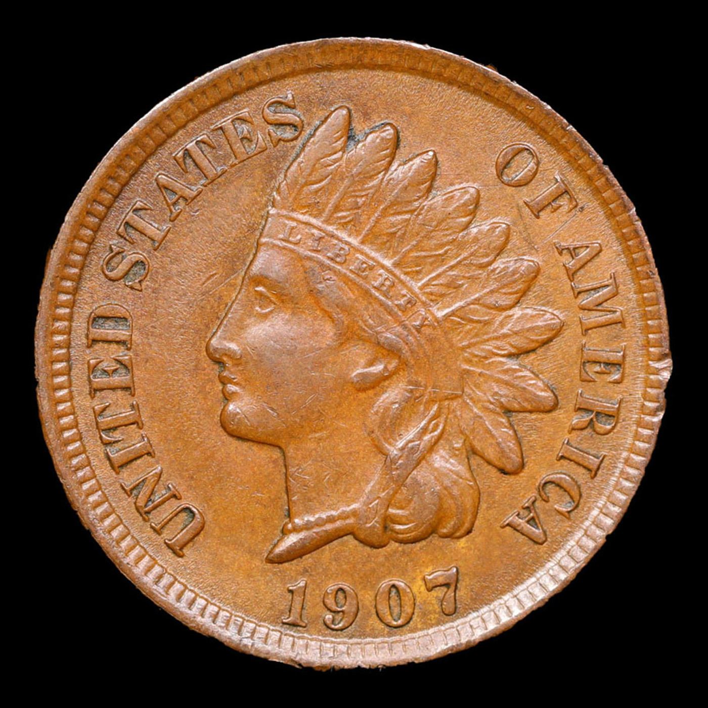 1907 Indian Cent 1c Grades Choice AU/BU Slider+.
