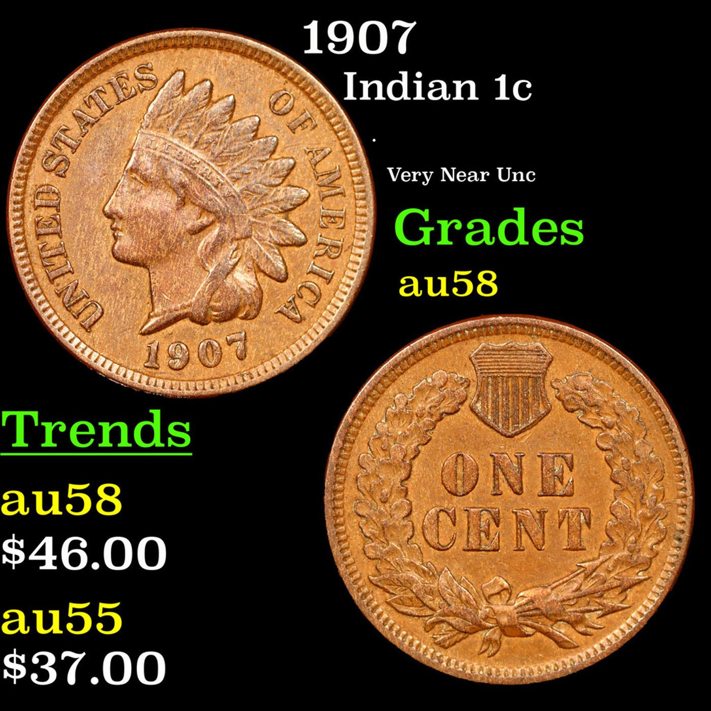 1907 Indian Cent 1c Grades Choice AU/BU Slider.